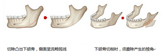 术前要先做全身麻醉,手术约个半小时,伤口在嘴巴内及下牙龈处。手术方法是依照患者的比例,将下巴骨锯开,重新固定在较好的位置;手术当天就可以回家,不用住院。术后约3周左右可有效消肿。